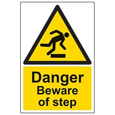 Helps to fulfil legal obligations to inform employees, visitors and the general public of potential hazards as per Health and Safety (Safety Signs & Signals) Regulations 1996 Conforms to EN ISO 7010:2012 - Warning signs feature a triangular symbol with a black pictogram and yellow background occupying at least 50% of the total sign area Portrait Orientation. Sign reads "Danger. Beware Of Step" Highly durable Self Adhesive Vinyl material and screen printed message will stand the test of time Sign measures 200 x 300mm. Self Adhesive material will adhere securely to most surfaces
