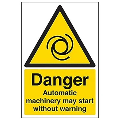 Helps to fulfil legal obligations to inform employees, visitors and the general public of potential hazards as per Health and Safety (Safety Signs & Signals) Regulations 1996 Conforms to EN ISO 7010:2012 - Warning signs feature a triangular symbol with a black pictogram and yellow background occupying at least 50% of the total sign area Portrait Orientation. Sign reads "Danger. Automatic Machinery May Start Without Warning" Highly durable 1mm plastic material and screen printed message will stand the test of time Sign measures 200 x 300mm.
