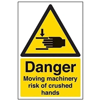 Helps to fulfil legal obligations to inform employees, visitors and the general public of potential hazards as per Health and Safety (Safety Signs & Signals) Regulations 1996 Conforms to EN ISO 7010:2012 - Warning signs feature a triangular symbol with a black pictogram and yellow background occupying at least 50% of the total sign area Portrait Orientation. Sign reads "Danger. Moving Machinery. Risk Of Crushed Hands" Highly durable 1mm plastic material and screen printed message will stand the test of time Sign measures 200 x 300mm.