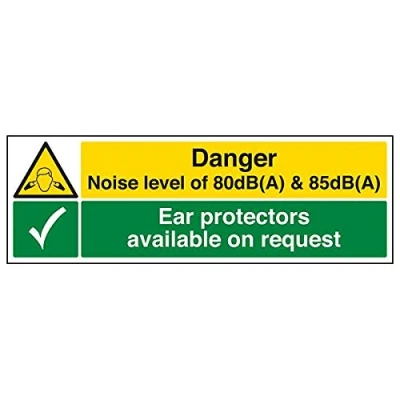 Helps to fulfil legal obligations to inform employees, visitors and the general public of potential hazards as per Health and Safety (Safety Signs & Signals) Regulations 1996 Conforms to EN ISO 7010:2012 - Warning signs feature a triangular symbol with a black pictogram and yellow background occupying at least 50% of the total sign area Landscape Orientation. Sign reads "Noise Hazard. Ear Protectors Available On Request" Highly durable 1mm plastic material and screen printed message will stand the test of time Sign measures 450 x 150mm.