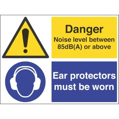 Helps to fulfil legal obligations to inform employees, visitors and the general public of potential hazards as per Health and Safety (Safety Signs & Signals) Regulations 1996 Conforms to EN ISO 7010:2012 - Warning signs feature a triangular symbol with a black pictogram and yellow background occupying at least 50% of the total sign area Landscape Orientation. Sign reads "Danger. Noise Levels Of 85dB(A) or Above. Ear Protectors Must Be Worn" Highly durable 1mm plastic material and screen printed message will stand the test of time Sign measures 600 x 450mm.