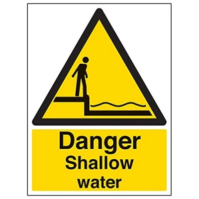 Ideal for use in kitchens and toilets to highlight any sources of hot water which could scald or injure Conforms to EN ISO 7010:2012 - Warning signs feature a triangular symbol with a black pictogram and yellow background occupying at least 50% of the total sign area Portrait Orientation. Sign reads "Danger. Shallow Water" Highly durable 1mm plastic material and screen printed message will stand the test of time Sign measures 300 x 400mm.