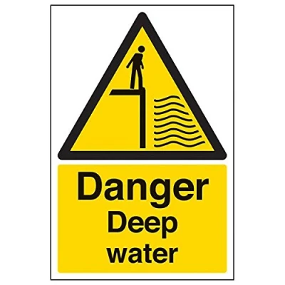 Ideal for use in kitchens and toilets to highlight any sources of hot water which could scald or injure Conforms to EN ISO 7010:2012 - Warning signs feature a triangular symbol with a black pictogram and yellow background occupying at least 50% of the total sign area Portrait Orientation. Sign reads "Danger. Deep Water" Highly durable 1mm plastic material and screen printed message will stand the test of time Sign measures 200 x 300mm.
