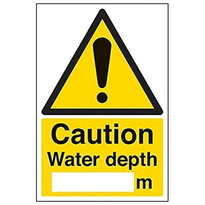 Ideal for use in kitchens and toilets to highlight any sources of hot water which could scald or injure Conforms to EN ISO 7010:2012 - Warning signs feature a triangular symbol with a black pictogram and yellow background occupying at least 50% of the total sign area Portrait Orientation. Sign reads "Caution. Water Depth" Highly durable Self Adhesive Vinyl material and screen printed message will stand the test of time Sign measures 200 x 300mm. Self Adhesive material will adhere securely to most surfaces
