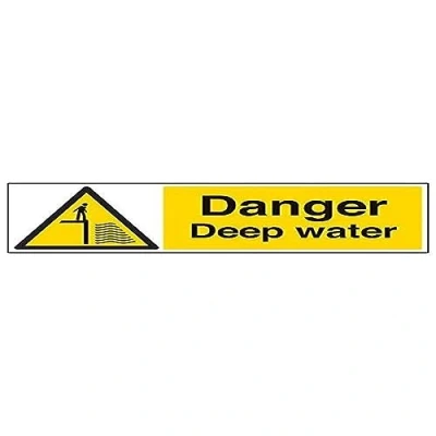 Ideal for use in kitchens and toilets to highlight any sources of hot water which could scald or injure Conforms to EN ISO 7010:2012 - Warning signs feature a triangular symbol with a black pictogram and yellow background occupying at least 50% of the total sign area Landscape Orientation. Sign reads "Danger. Deep Water" Highly durable Self Adhesive Vinyl material and screen printed message will stand the test of time Sign measures 600 x 200mm. Self Adhesive material will adhere securely to most surfaces
