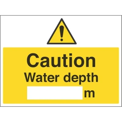 Ideal for use in kitchens and toilets to highlight any sources of hot water which could scald or injure Conforms to EN ISO 7010:2012 - Warning signs feature a triangular symbol with a black pictogram and yellow background occupying at least 50% of the total sign area Landscape Orientation. Sign reads "Caution. Water Depth" Highly durable Self Adhesive Vinyl material and screen printed message will stand the test of time Sign measures 400 x 300mm. Self Adhesive material will adhere securely to most surfaces