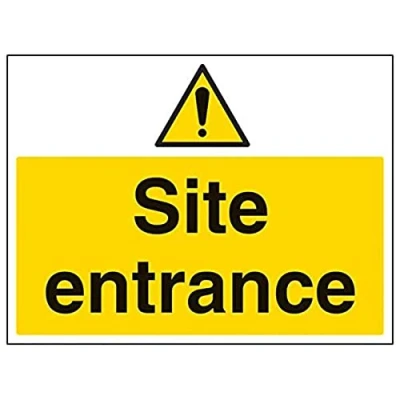 Helps to fulfil legal obligations to inform employees, visitors and the general public of potential hazards as per Health and Safety (Safety Signs & Signals) Regulations 1996 Conforms to EN ISO 7010:2012 - Warning signs feature a triangular symbol with a black pictogram and yellow background occupying at least 50% of the total sign area Landscape Orientation. Sign reads "Site Entrance" Highly durable Self Adhesive Vinyl material and screen printed message will stand the test of time Sign measures 400 x 300mm. Self Adhesive material will adhere securely to most surfaces