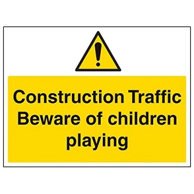 Helps to fulfil legal obligations to inform employees, visitors and the general public of potential hazards as per Health and Safety (Safety Signs & Signals) Regulations 1996 Conforms to EN ISO 7010:2012 - Warning signs feature a triangular symbol with a black pictogram and yellow background occupying at least 50% of the total sign area Landscape Orientation. Sign reads "Construction Traffic. Beware Of Children Playing" Highly durable 1mm plastic material and screen printed message will stand the test of time Sign measures 400 x 300mm.