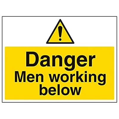 Helps to fulfil legal obligations to inform employees, visitors and the general public of potential hazards as per Health and Safety (Safety Signs & Signals) Regulations 1996 Conforms to EN ISO 7010:2012 - Warning signs feature a triangular symbol with a black pictogram and yellow background occupying at least 50% of the total sign area Landscape Orientation. Sign reads "Danger. Men Working Below" Highly durable Self Adhesive Vinyl material and screen printed message will stand the test of time Sign measures 400 x 300mm. Self Adhesive material will adhere securely to most surfaces