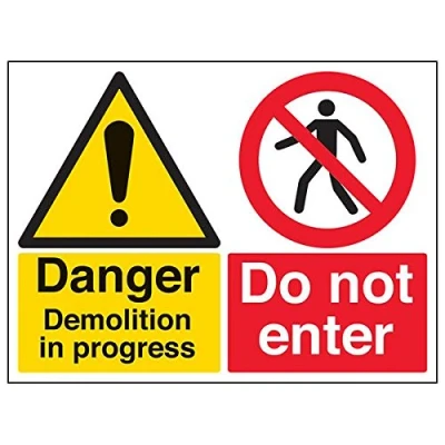 Helps to fulfil legal obligations to inform employees, visitors and the general public of potential hazards as per Health and Safety (Safety Signs & Signals) Regulations 1996 Conforms to EN ISO 7010:2012 - Warning signs feature a triangular symbol with a black pictogram and yellow background occupying at least 50% of the total sign area Landscape Orientation. Sign reads "Danger. Demolition In Progress. Do Not Enter" Highly durable Self Adhesive Vinyl material and screen printed message will stand the test of time Sign measures 400 x 300mm. Self Adhesive material will adhere securely to most surfaces