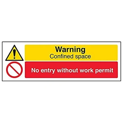 Helps to fulfil legal obligations to inform employees, visitors and the general public of potential hazards as per Health and Safety (Safety Signs & Signals) Regulations 1996 Conforms to EN ISO 7010:2012 - Warning signs feature a triangular symbol with a black pictogram and yellow background occupying at least 50% of the total sign area Landscape Orientation. Sign reads "Warning. Confined Space. Entry To Work Permit Only" Highly durable 1mm plastic material and screen printed message will stand the test of time Sign measures 300 x 100mm.