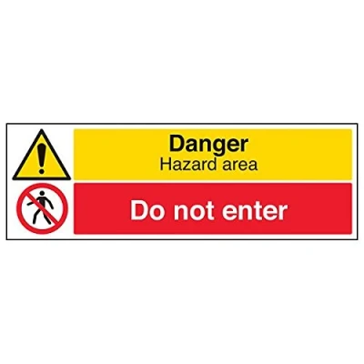 Helps to fulfil legal obligations to inform employees, visitors and the general public of potential hazards as per Health and Safety (Safety Signs & Signals) Regulations 1996 Conforms to EN ISO 7010:2012 - Warning signs feature a triangular symbol with a black pictogram and yellow background occupying at least 50% of the total sign area Landscape Orientation. Sign reads "Danger. Hazard Area. Do Not Enter" Highly durable Self Adhesive Vinyl material and screen printed message will stand the test of time Sign measures 600 x 200mm. Self Adhesive material will adhere securely to most surfaces