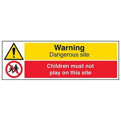 Helps to fulfil legal obligations to inform employees, visitors and the general public of potential hazards as per Health and Safety (Safety Signs & Signals) Regulations 1996 Conforms to EN ISO 7010:2012 - Warning signs feature a triangular symbol with a black pictogram and yellow background occupying at least 50% of the total sign area Landscape Orientation. Sign reads "Warning. Dangerous Site. Children Must Not Play On This Site" Highly durable Self Adhesive Vinyl material and screen printed message will stand the test of time Sign measures 600 x 200mm. Self Adhesive material will adhere securely to most surfaces