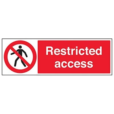 Helps to fulfil legal obligations to inform employees, visitors and the general public of potential hazards as per Health and Safety (Safety Signs & Signals) Regulations 1996 Conforms to EN ISO 7010:2012 - Warning signs feature a triangular symbol with a black pictogram and yellow background occupying at least 50% of the total sign area Landscape Orientation. Sign reads "Restricted Access" Highly durable 1mm plastic material and screen printed message will stand the test of time Sign measures 600 x 200mm.