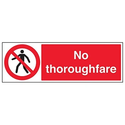 Helps to fulfil legal obligations to inform employees, visitors and the general public of potential hazards as per Health and Safety (Safety Signs & Signals) Regulations 1996 Conforms to EN ISO 7010:2012 - Warning signs feature a triangular symbol with a black pictogram and yellow background occupying at least 50% of the total sign area Landscape Orientation. Sign reads "No Thoroughfare" Highly durable Self Adhesive Vinyl material and screen printed message will stand the test of time Sign measures 600 x 200mm. Self Adhesive material will adhere securely to most surfaces