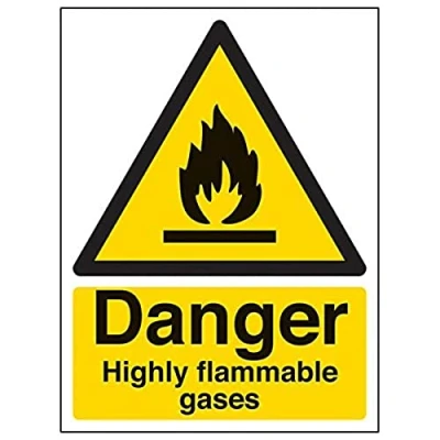 Helps to fulfil legal obligations to inform employees, visitors and the general public of potential hazards as per Health and Safety (Safety Signs & Signals) Regulations 1996 Conforms to EN ISO 7010:2012 - Warning signs feature a triangular symbol with a black pictogram and yellow background occupying at least 50% of the total sign area Portrait Orientation. Sign reads "Danger. Highly Flammable Gases" Highly durable 1mm plastic material and screen printed message will stand the test of time Sign measures 150 x 200mm.