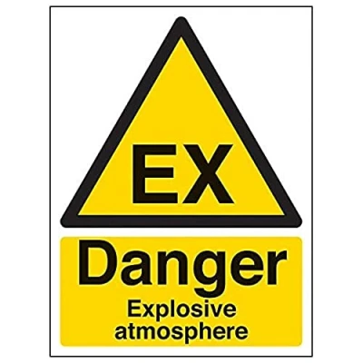 Helps to fulfil legal obligations to inform employees, visitors and the general public of potential hazards as per Health and Safety (Safety Signs & Signals) Regulations 1996 Conforms to EN ISO 7010:2012 - Warning signs feature a triangular symbol with a black pictogram and yellow background occupying at least 50% of the total sign area Portrait Orientation. Sign reads "Danger. Explosive Atmosphere" Highly durable Self Adhesive Vinyl material and screen printed message will stand the test of time Sign measures 150 x 200mm. Self Adhesive material will adhere securely to most surfaces