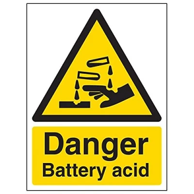 Helps to fulfil legal obligations to inform employees, visitors and the general public of potential hazards as per Health and Safety (Safety Signs & Signals) Regulations 1996 Conforms to EN ISO 7010:2012 - Warning signs feature a triangular symbol with a black pictogram and yellow background occupying at least 50% of the total sign area Portrait Orientation. Sign reads "Danger. Battery Acid" Highly durable 1mm plastic material and screen printed message will stand the test of time Sign measures 150 x 200mm.