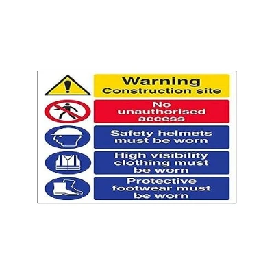 Helps to fulfil legal obligations to inform employees, visitors and the general public of potential hazards as per Health and Safety (Safety Signs & Signals) Regulations 1996 Conforms to EN ISO 7010:2012 - Warning signs feature a triangular symbol with a black pictogram and yellow background occupying at least 50% of the total sign area Portrait Orientation. Sign reads "Warning. Construction Site. No Unauthorised Access. Safety Helmets Must Be Worn. High Visibility Clothing Must Be Worn" Highly durable Self Adhesive Vinyl material and screen printed message will stand the test of time Sign measures 300 x 400mm. Self Adhesive material will adhere securely to most surfaces