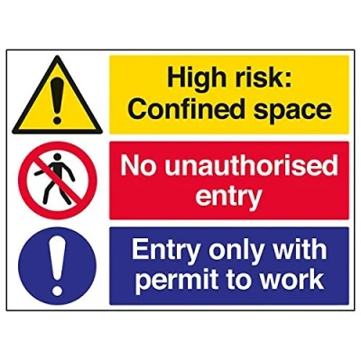 Helps to fulfil legal obligations to inform employees, visitors and the general public of potential hazards as per Health and Safety (Safety Signs & Signals) Regulations 1996 Conforms to EN ISO 7010:2012 - Warning signs feature a triangular symbol with a black pictogram and yellow background occupying at least 50% of the total sign area Landscape Orientation. Sign reads "High Risk: Confined Space. No Unauthorised Entry. Entry Only With Permit To Work" Highly durable 1mm plastic material and screen printed message will stand the test of time Sign measures 600 x 450mm.