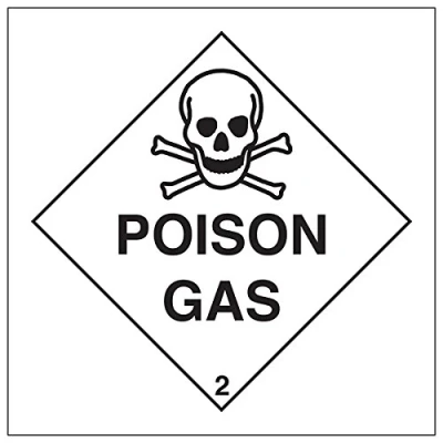 Helps to fulfil legal obligations to inform employees, visitors and the general public of potential hazards as per Health and Safety (Safety Signs & Signals) Regulations 1996 Conforms to EN ISO 7010:2012 - Warning signs feature a triangular symbol with a black pictogram and yellow background occupying at least 50% of the total sign area Square Orientation. Sign reads "Poison Gas" Highly durable Self Adhesive Vinyl material and screen printed message will stand the test of time Sign measures 100 x 100mm. Self Adhesive material will adhere securely to most surfaces