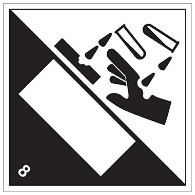 Helps to fulfil legal obligations to inform employees, visitors and the general public of potential hazards as per Health and Safety (Safety Signs & Signals) Regulations 1996 Conforms to EN ISO 7010:2012 - Warning signs feature a triangular symbol with a black pictogram and yellow background occupying at least 50% of the total sign area Square Orientation. Sign features ISO compliant Corrosive 8 UN Substance Numbering Hazard Label Highly durable Self Adhesive Vinyl material and screen printed message will stand the test of time Sign measures 250 x 250mm. Self Adhesive material will adhere securely to most surfaces
