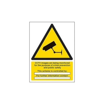 Helps to fulfil legal obligations to inform employees, visitors and the general public of potential hazards as per Health and Safety (Safety Signs & Signals) Regulations 1996 Conforms to EN ISO 7010:2012 - Warning signs feature a triangular symbol with a black pictogram and yellow background occupying at least 50% of the total sign area Portrait Orientation. Sign reads "CCTV Images Are Being Monitored For The Purpose of Crime Prevention and Public Safety. This Scheme Is Controlled By. For Further Information Contact" Highly durable 1mm plastic material and screen printed message will stand the test of time Sign measures 150 x 200mm.