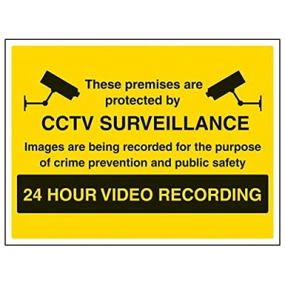Helps to fulfil legal obligations to inform employees, visitors and the general public of potential hazards as per Health and Safety (Safety Signs & Signals) Regulations 1996 Conforms to EN ISO 7010:2012 - Warning signs feature a triangular symbol with a black pictogram and yellow background occupying at least 50% of the total sign area Landscape Orientation. Sign reads "These Premises Are Protected By CCTV Surveillance. Images Are Being Recorded For The Purpose Of Crime Prevention And Public Safety. 24 Hour Video Recording" Highly durable Self Adhesive Vinyl material and screen printed message will stand the test of time Sign measures 400 x 300mm. Self Adhesive material will adhere securely to most surfaces
