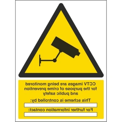 Helps to fulfil legal obligations to inform employees, visitors and the general public of potential hazards as per Health and Safety (Safety Signs & Signals) Regulations 1996 Conforms to EN ISO 7010:2012 - Warning signs feature a triangular symbol with a black pictogram and yellow background occupying at least 50% of the total sign area Portrait Orientation. Sign reads "CCTV Images Are Being Monitored For The Purpose Of Crime Prevention And Public Safety. This Scheme Is Controlled By. For Further Information Contact" Highly durable Window Sticker material and screen printed message will stand the test of time