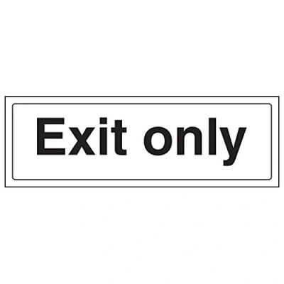 Helps to keep staff and customers informed of the purpose of the premises in a building. Conforms to EN ISO 7010:2012 Landscape Orientation. Sign reads "Exit Only" Highly durable Self Adhesive Vinyl material and screen printed message will stand the test of time Sign measures 300 x 100mm. Self Adhesive material will adhere securely to most surfaces