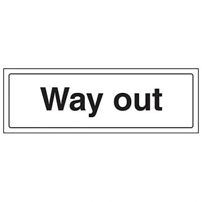 Helps to keep staff and customers informed of the purpose of the premises in a building. Conforms to EN ISO 7010:2012 Landscape Orientation. Sign reads "Way Out" Highly durable 1mm plastic material and screen printed message will stand the test of time Sign measures 300 x 100mm.