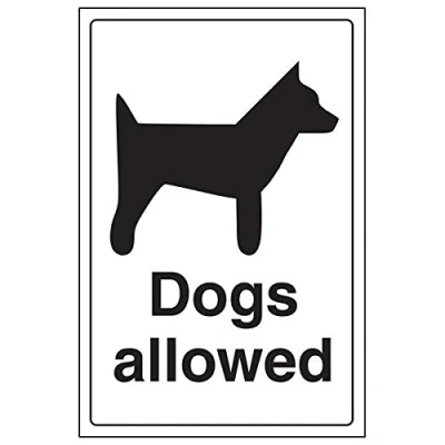 Clearly displays easily understood message, can be used in a number of locations, as per Health and Safety (Safety Signs & Signals) Regulations 1996 Conforms to EN ISO 7010:2012 Portrait Orientation. Sign reads "Dogs Allowed" Highly durable Self Adhesive Vinyl material and screen printed message will stand the test of time Sign measures 200 x 300mm. Self Adhesive material will adhere securely to most surfaces