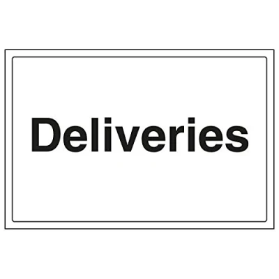 Clearly displays easily understood message, can be used in a number of locations, as per Health and Safety (Safety Signs & Signals) Regulations 1996 Conforms to EN ISO 7010:2012 Landscape Orientation. Sign reads "Deliveries" Highly durable 1mm plastic material and screen printed message will stand the test of time Sign measures 300 x 200mm.