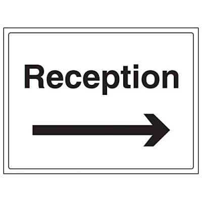 Clearly displays easily understood message, can be used in a number of locations, as per Health and Safety (Safety Signs & Signals) Regulations 1996 Conforms to EN ISO 7010:2012 Landscape Orientation. Sign reads "Reception" Highly durable Self Adhesive Vinyl material and screen printed message will stand the test of time Sign measures 400 x 300mm. Self Adhesive material will adhere securely to most surfaces