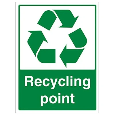 Clearly displays easily understood message, can be used in a number of locations, as per Health and Safety (Safety Signs & Signals) Regulations 1996 Conforms to EN ISO 7010:2012 Portrait Orientation. Sign reads "Recycling Point" Highly durable Self Adhesive Vinyl material and screen printed message will stand the test of time Sign measures 300 x 400mm. Self Adhesive material will adhere securely to most surfaces