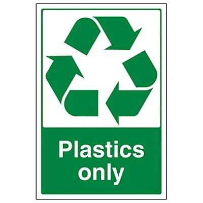 Clearly displays easily understood message, can be used in a number of locations, as per Health and Safety (Safety Signs & Signals) Regulations 1996 Conforms to EN ISO 7010:2012 Portrait Orientation. Sign reads "Plastics Only" Highly durable 1mm plastic material and screen printed message will stand the test of time Sign measures 200 x 300mm.