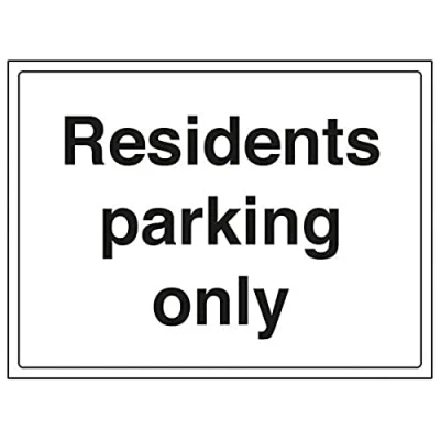 Helps to fulfil legal obligations to advise the public of actions or restrictions concerning parking, as per Health and Safety (Safety Signs & Signals) Regulations 1996 Conforms to EN ISO 7010:2012 Landscape Orientation. Sign reads "Residents Parking Only" Highly durable Self Adhesive Vinyl material and screen printed message will stand the test of time Sign measures 400 x 300mm. Self Adhesive material will adhere securely to most surfaces