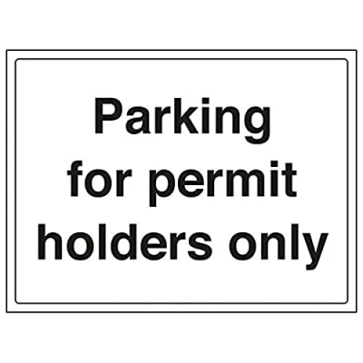 Helps to fulfil legal obligations to advise the public of actions or restrictions concerning parking, as per Health and Safety (Safety Signs & Signals) Regulations 1996 Conforms to EN ISO 7010:2012 Landscape Orientation. Sign reads "Parking For Permit Holders Only" Highly durable 1mm plastic material and screen printed message will stand the test of time Sign measures 400 x 300mm.