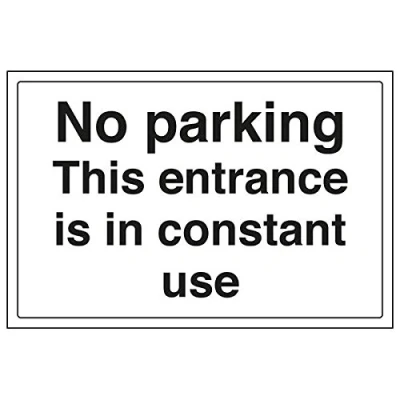Helps to fulfil legal obligations to advise the public of actions or restrictions concerning parking, as per Health and Safety (Safety Signs & Signals) Regulations 1996 Conforms to EN ISO 7010:2012 Landscape Orientation. Sign reads "No Parking. This Entrance Is In Constant Use" Highly durable 1mm plastic material and screen printed message will stand the test of time Sign measures 300 x 200mm.