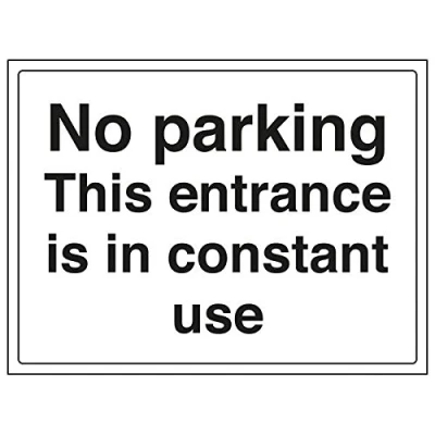 Helps to fulfil legal obligations to advise the public of actions or restrictions concerning parking, as per Health and Safety (Safety Signs & Signals) Regulations 1996 Conforms to EN ISO 7010:2012 Landscape Orientation. Sign reads "No Parking. This Entrance Is In Constant Use" Highly durable Self Adhesive Vinyl material and screen printed message will stand the test of time Sign measures 400 x 300mm. Self Adhesive material will adhere securely to most surfaces