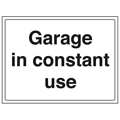 Helps to fulfil legal obligations to advise the public of actions or restrictions concerning parking, as per Health and Safety (Safety Signs & Signals) Regulations 1996 Conforms to EN ISO 7010:2012 Landscape Orientation. Sign reads "Garage In Constant Use" Highly durable Self Adhesive Vinyl material and screen printed message will stand the test of time Sign measures 400 x 300mm. Self Adhesive material will adhere securely to most surfaces