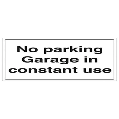Helps to fulfil legal obligations to advise the public of actions or restrictions concerning parking, as per Health and Safety (Safety Signs & Signals) Regulations 1996 Conforms to EN ISO 7010:2012 Landscape Orientation. Sign reads "No Parking. Garage In Constant Use" Highly durable Self Adhesive Vinyl material and screen printed message will stand the test of time Sign measures 400 x 300mm. Self Adhesive material will adhere securely to most surfaces