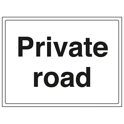 Helps to fulfil legal obligations to advise the public of actions or restrictions concerning parking, as per Health and Safety (Safety Signs & Signals) Regulations 1996 Conforms to EN ISO 7010:2012 Landscape Orientation. Sign reads "Private Road" Highly durable Self Adhesive Vinyl material and screen printed message will stand the test of time Sign measures 400 x 300mm. Self Adhesive material will adhere securely to most surfaces