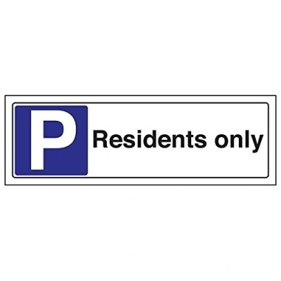 Helps to fulfil legal obligations to advise the public of actions or restrictions concerning parking, as per Health and Safety (Safety Signs & Signals) Regulations 1996 Conforms to EN ISO 7010:2012 Landscape Orientation. Sign reads "Residents Only" Highly durable Self Adhesive Vinyl material and screen printed message will stand the test of time Sign measures 300 x 100mm. Self Adhesive material will adhere securely to most surfaces