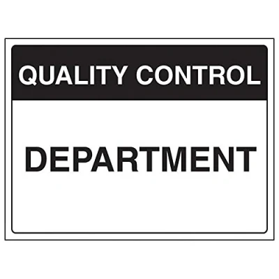 Communicates relevant quality control measures on your site to employees Conforms to EN ISO 7010:2012 Landscape Orientation. Sign reads "Quality Control. Department" Highly durable Self Adhesive Vinyl material and screen printed message will stand the test of time Sign measures 400 x 300mm. Self Adhesive material will adhere securely to most surfaces
