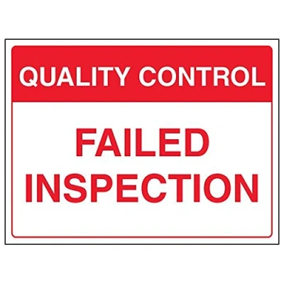 Communicates relevant quality control measures on your site to employees Conforms to EN ISO 7010:2012 Landscape Orientation. Sign reads "Quality Control. Failed Inspection" Highly durable 1mm plastic material and screen printed message will stand the test of time Sign measures 400 x 300mm.