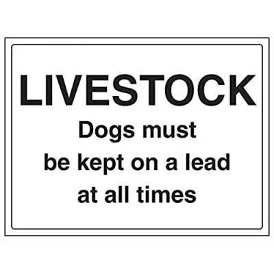 Provides essential information of the dangers on private properties to ensure personal safety as per Health and Safety (Safety Signs & Signals) Regulations 1996 Conforms to EN ISO 7010:2012 Landscape Orientation. Sign reads "Livestock. Dogs Must Be Kept On A Lead At All Times" Highly durable Self Adhesive Vinyl material and screen printed message will stand the test of time Sign measures 400 x 300mm. Self Adhesive material will adhere securely to most surfaces