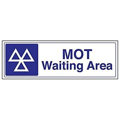Help to keep staff safe by informing of high risk areas and safe working procedures. Conforms to EN ISO 7010:2012 Landscape Orientation. Sign reads "MOT Waiting Area" Highly durable 1mm plastic material and screen printed message will stand the test of time Sign measures 450 x 150mm.