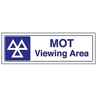Help to keep staff safe by informing of high risk areas and safe working procedures. Conforms to EN ISO 7010:2012 Landscape Orientation. Sign reads "MOT Viewing Area" Highly durable Self Adhesive Vinyl material and screen printed message will stand the test of time Sign measures 300 x 100mm. Self Adhesive material will adhere securely to most surfaces