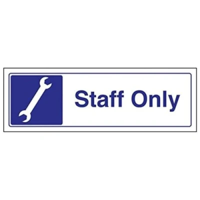 Help to keep staff safe by informing of high risk areas and safe working procedures. Conforms to EN ISO 7010:2012 Landscape Orientation. Sign reads "Staff Only" Highly durable Self Adhesive Vinyl material and screen printed message will stand the test of time Sign measures 300 x 100mm. Self Adhesive material will adhere securely to most surfaces